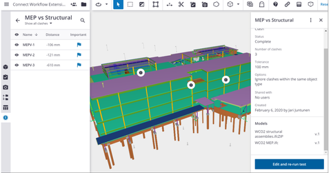 Check for structural conflict within a 3D model. Clash reports provide detailed views of the clashes in the 3D model, showing a clearance as a positive measurement and a clash as a negative measurement.