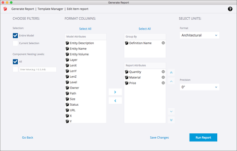 Create simple or complex components in your project. Add any related content you wish, from dimensions, vendor, price, to calculating formulas. One of our power users in China have applied over 10 patents and they have attributed it to using SketchUp and Dynamic Components!
